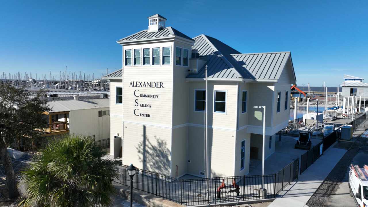 Progress continues on the New Orleans Community Sailing Center. All exterior finishes, sidewalks, and paving have been completed. Currently our team is working to establish permanent power to the site in order to complete interior finishes and elevator installation. The project is on track to be completed by the end of this year.