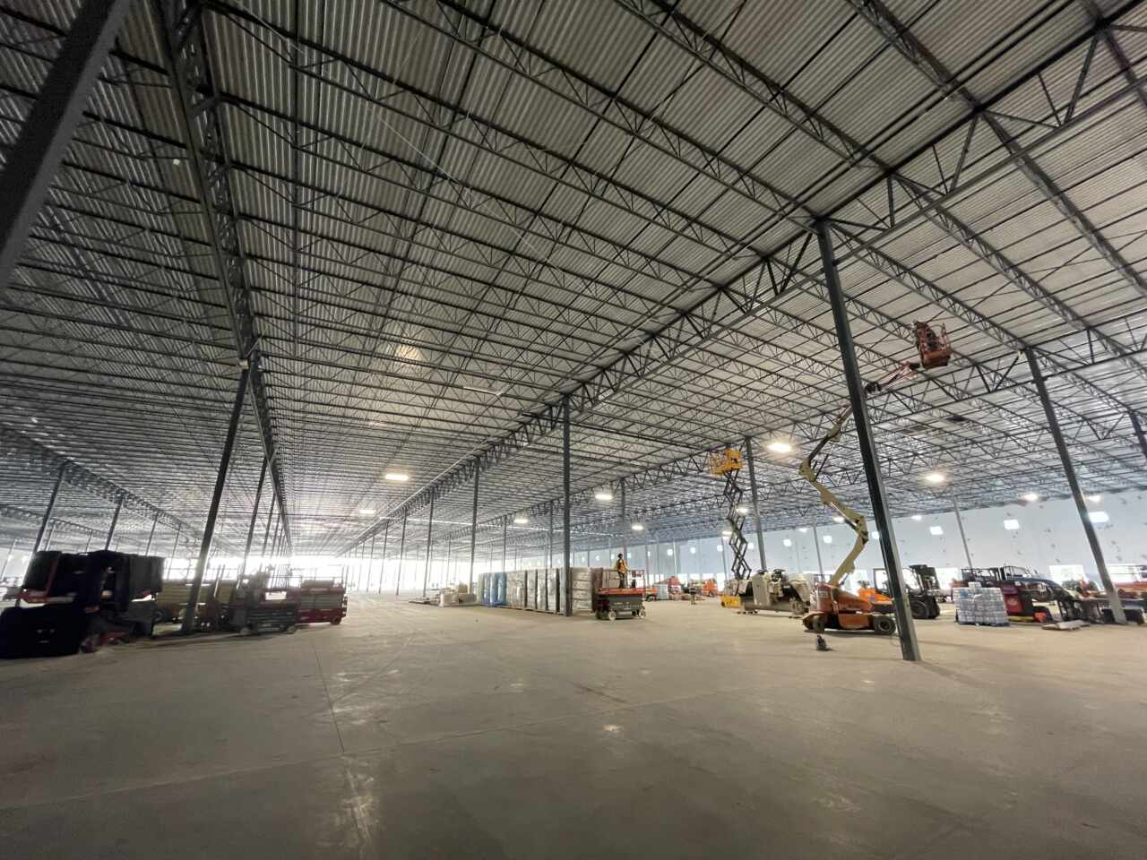 Efficiency, especially in the construction of these types of facilities, also comes in the use of tilt walls. These exterior facade concrete walls are cast-in-place onsite and then tilted into place. They serve as the structure and skin of the building and provide insulation properties. This method allows multiple portions of the building and site to progress simultaneously without disrupting the schedule.