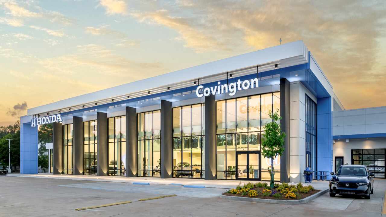 The Honda of Covington automotive dealership renovation spanning six months, delivered 16,300 square feet of renovated and additional space. Renovations included new storefront and curtain wall glass facade, and newly branded front entry feature. The showroom was completely renovated to an open-air concept featuring 22-foot high ceiling height, new LVT and ceramic tile floors, Carvart glass wall with signage, and remodeled bathrooms. The project provided the addition of a new car delivery area and new office space.